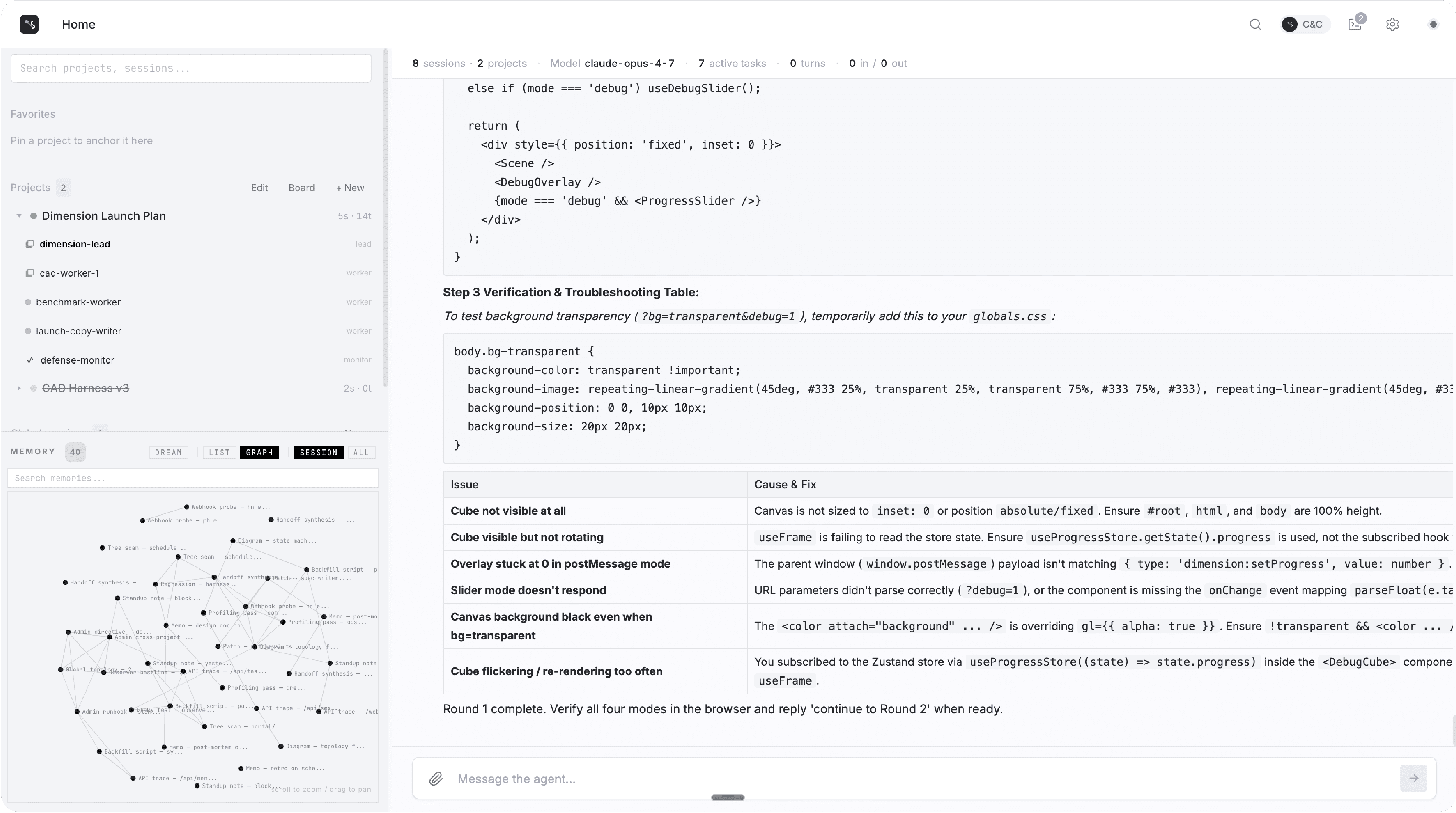 Project-based multi-agent orchestration — each agent maintains its own CoMeT memory tree while sharing nodes, talking to each other across the session.